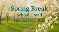 Spring Break – School is closed – March 13 – 27, 2026
